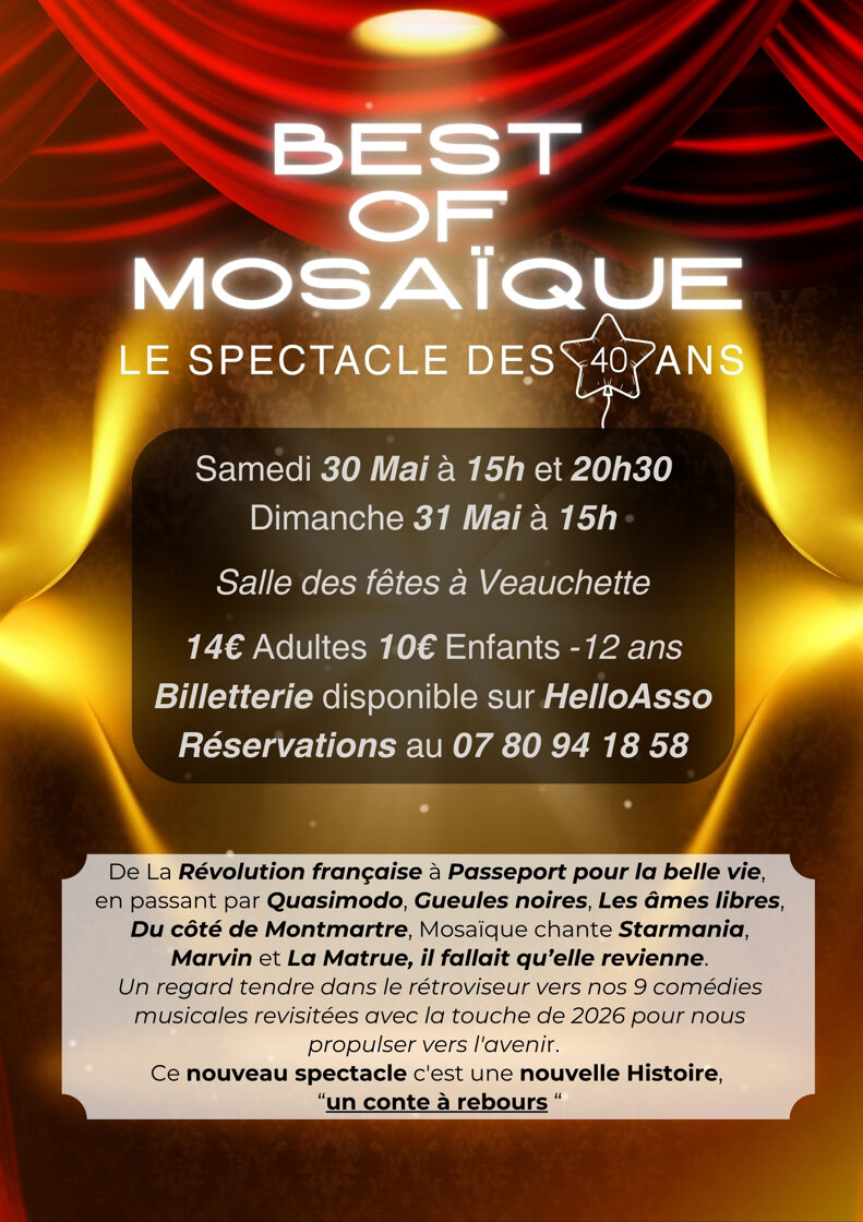Billetterie auprès de l'association Mosaïque et sur Hello Asso (ci -dessous)